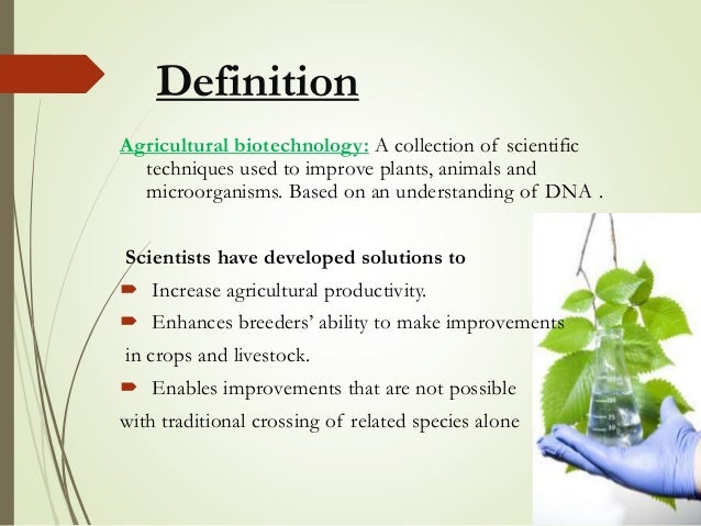 Biotechnology in agriculture benefits both farmers and the environment. Biotechnology is used in agriculture to improve crops and livestock based on DNA and its concepts and to address problems in all areas of agricultural production and processing. It has the ability to give biological protection from disease. Role of Biotechnology in Agriculture. The role of biotechnology in agriculture is multifaceted. Ad Now accepting submissions in engineering. An important objective of biotechnology in agriculture section is to Class12Subject. Importance of Biotechnology in Agriculture.